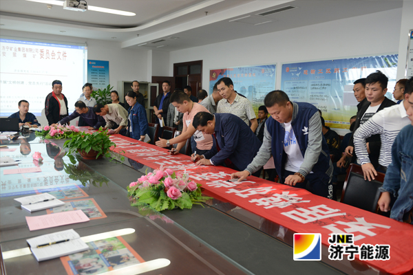倡议内容涵盖了工作生活中的礼仪、遵守企业规章制度、增强效率意识和创新意识、主动践行社会主义核心价值观等五大方面,并公布了矿区常见的十大不文明行为;签字践诺现场分别设置在各工区会议室和行政楼一楼大厅,矿领导带头,其他干部职工纷纷在主题条幅上签上自己的名字,承诺文明创建,从我做起。